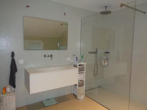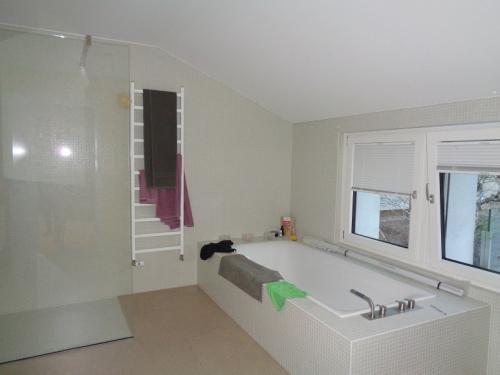 Cuisine agencée (totalement équipée) ouverte sur séjour, 2 chambres dont 1 sous les combles, 1 bureau ouvert en mezzanine, 1 grande salle de bains avec baignoire, douche, lavabo double et colonne à laver-sécher, 1 penderie à l’entrée.